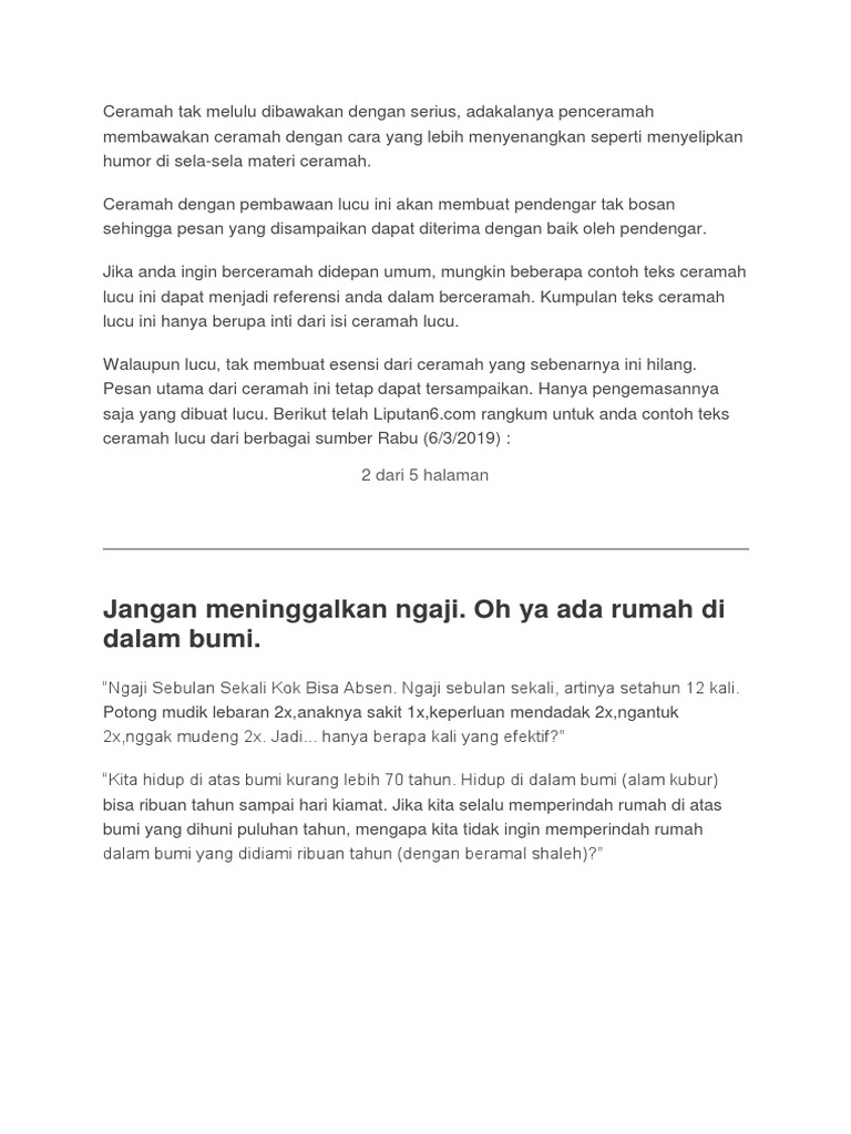 Ceramah agama islam juga sering dibawakan untuk hal penting. Assalamualaikum Mataram ka belah kaler kota medan ka belah kidul lamun salam teu di waler. Teks ceramah lucu jilid 2 ini hanya memuat bagian yang lucunya saja.
